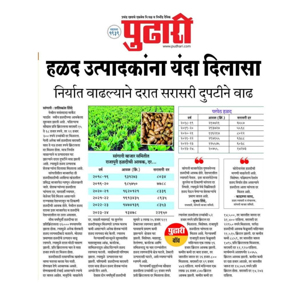 सांगली बाजारपेठेत गुणवतेच्या हळदीची आवक होते. देशभरातील व्यापारी येतात. इतर बाजारपेठेच्या तुलनेत या ठिकाणी चांगला दर निघतो, त्यामुळे येथे विक्रीसाठी हळद घेऊन येणाऱ्या शेतकऱ्यांचे प्रमाण जास्त आहे.